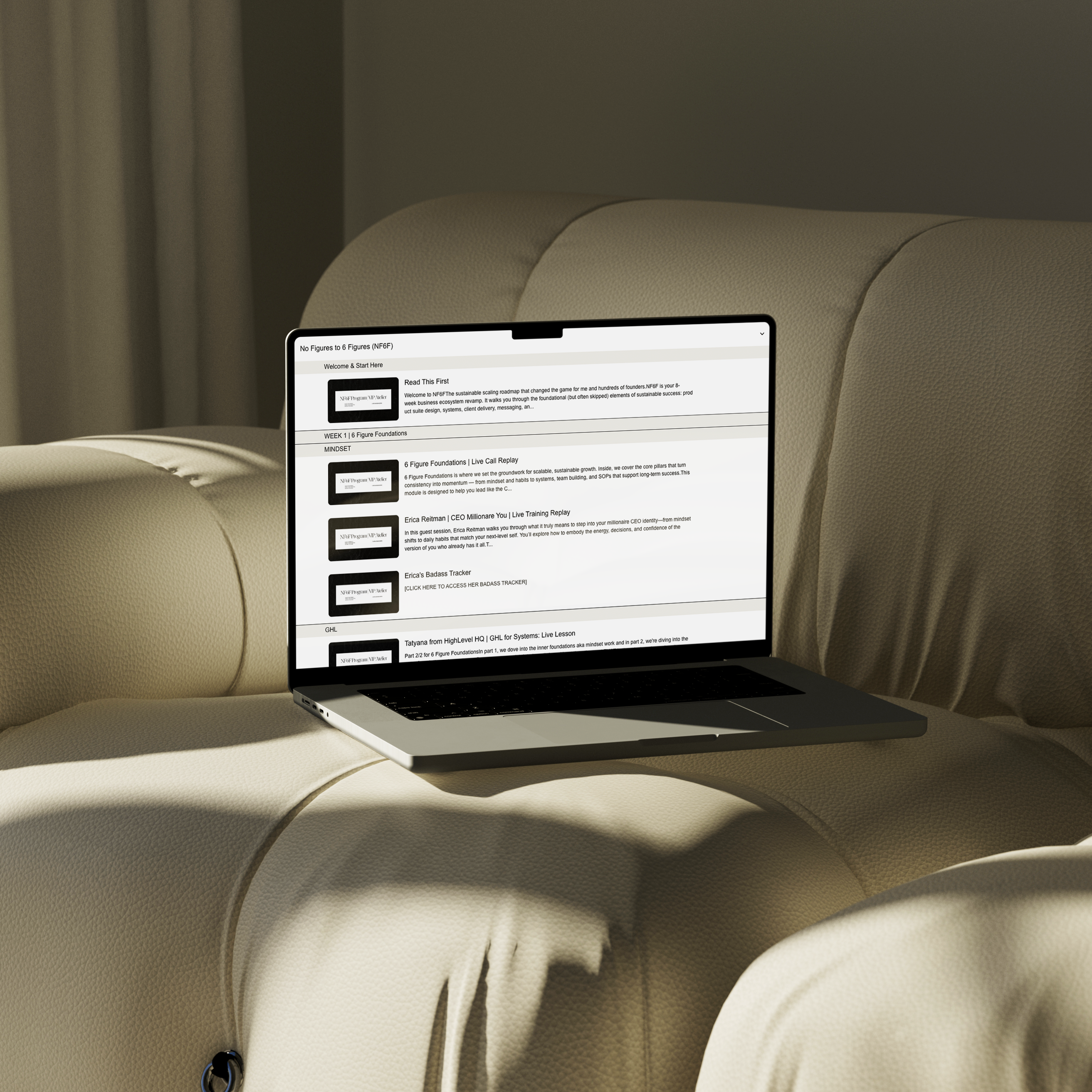 Inside, you’ll step into the kind of work that relights you, the advanced strategy, sales psychology, and operational depth that matches the level you’re actually playing at now (not the level you outgrew two years ago). NF6F becomes your base camp. Yes, 7-figure founders use it too because they’re ready to rebuild or pivot in a way that’s actually scalable and sane.