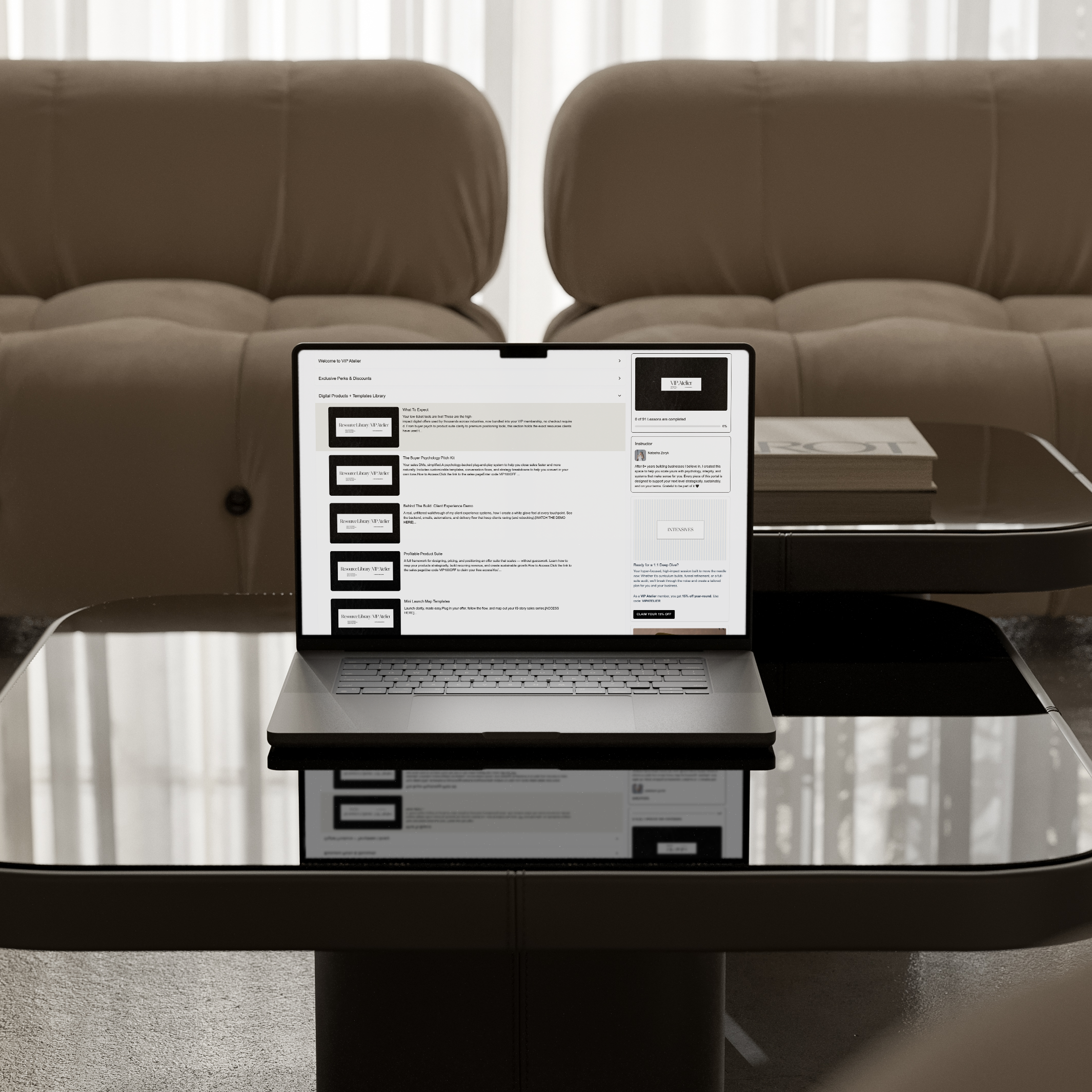 The VIP Atelier gives you the full suite: every replay, every digital product, every template, and every new offer I create, all under one membership.