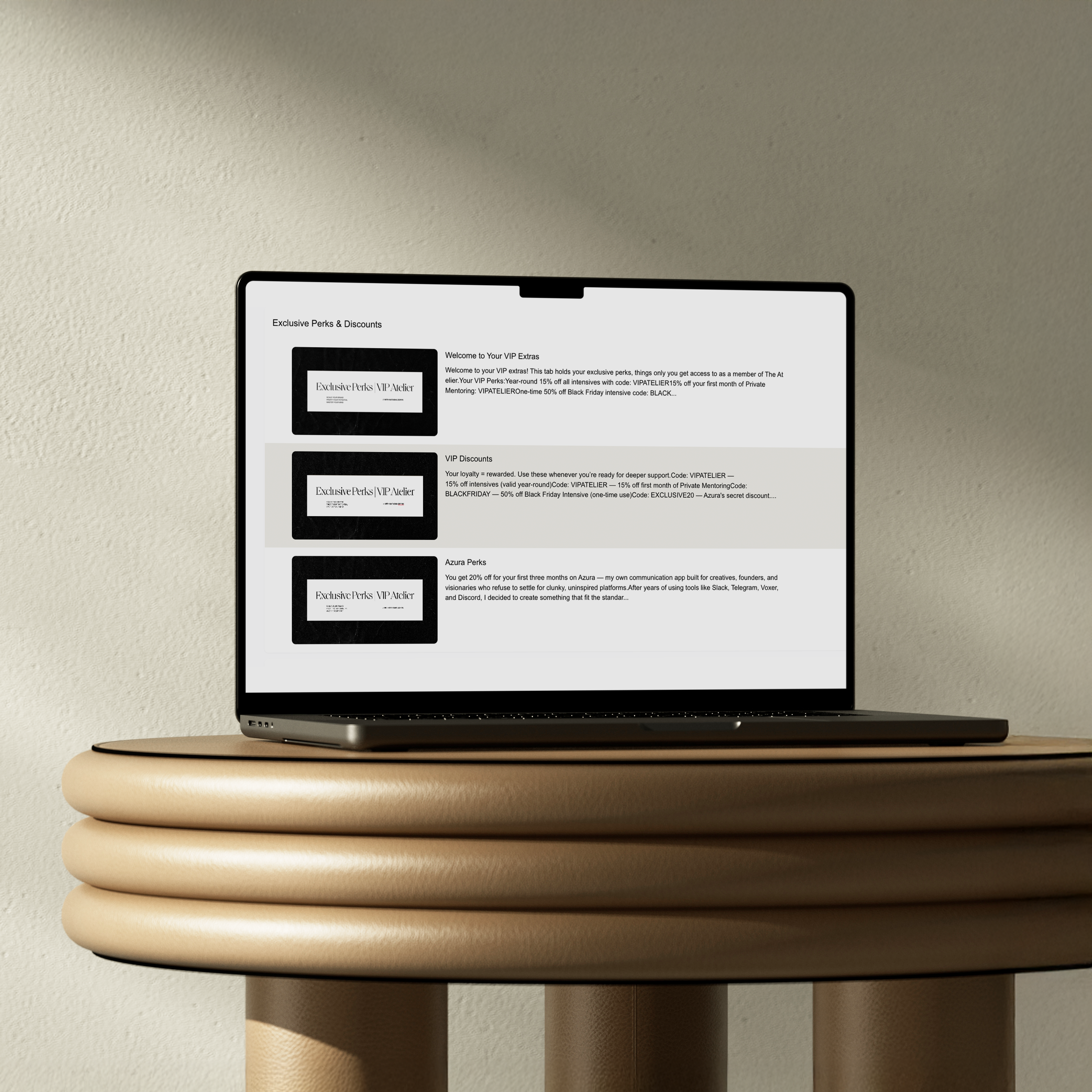 VIP Atelier gives you the frameworks, the strategy, and the behind-the-scenes refinement usually reserved for private clients, without needing to burn everything down to evolve.